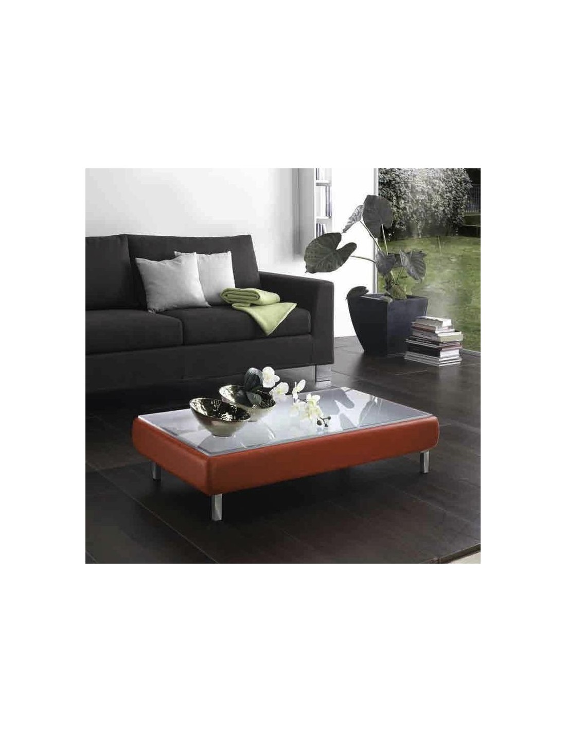 Coffee table rectangular padded upholstered in ecoleather, with frosted glass top and chrome legs. Available in different finishes, the table Soft is refined and elegant, is well suited to all types of furniture and special padding ensures greater safety of use for those with small children. The glass top can be raised to store items inside the table, which becomes a handy container for newspapers, remote controls and other items of daily use.