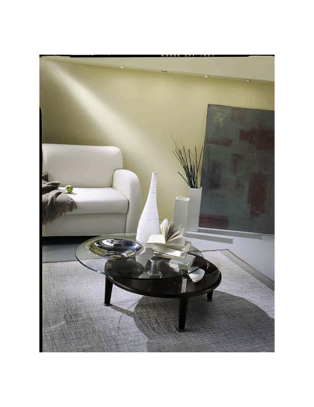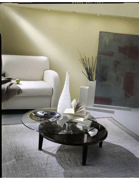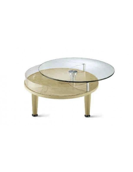 Table Round wooden board coated in melanine, with swivel crystal. Table suitable for multiple uses, modern lines and design.