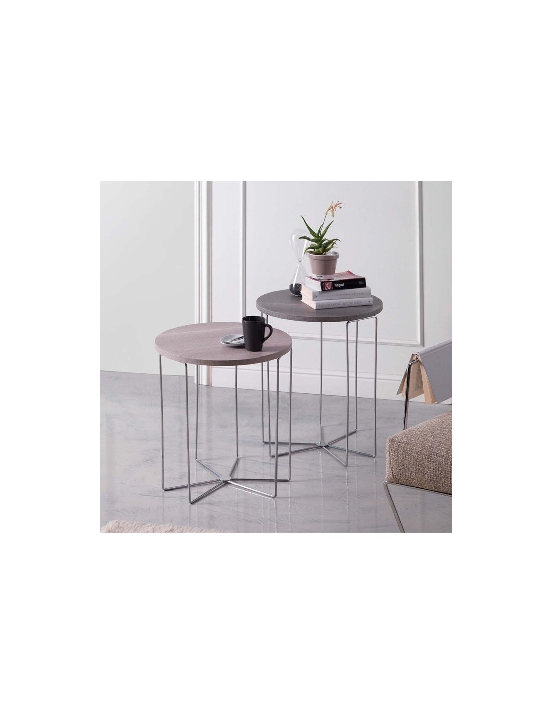 Pedestal table painted metal chrome with wooden floors covered with melamine. Available in different finishes, Silver coffee table lends itself to countless uses, thanks to the measures contained and the pleasant design.