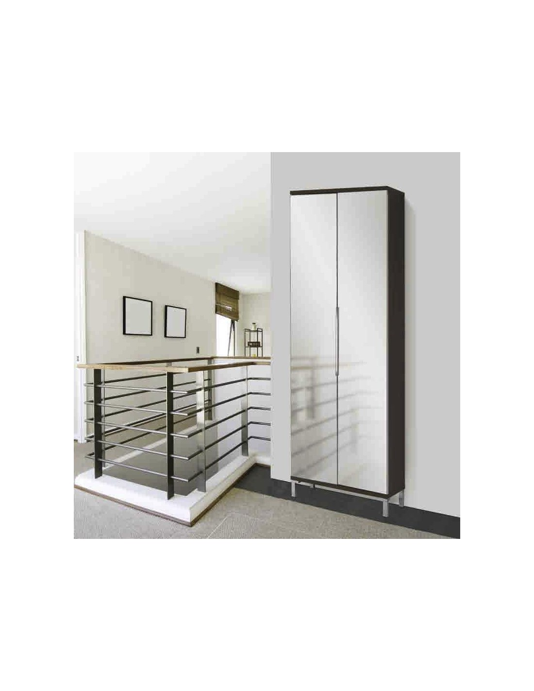 Shoe rack with two mirror doors, wooden structure covered melamine.