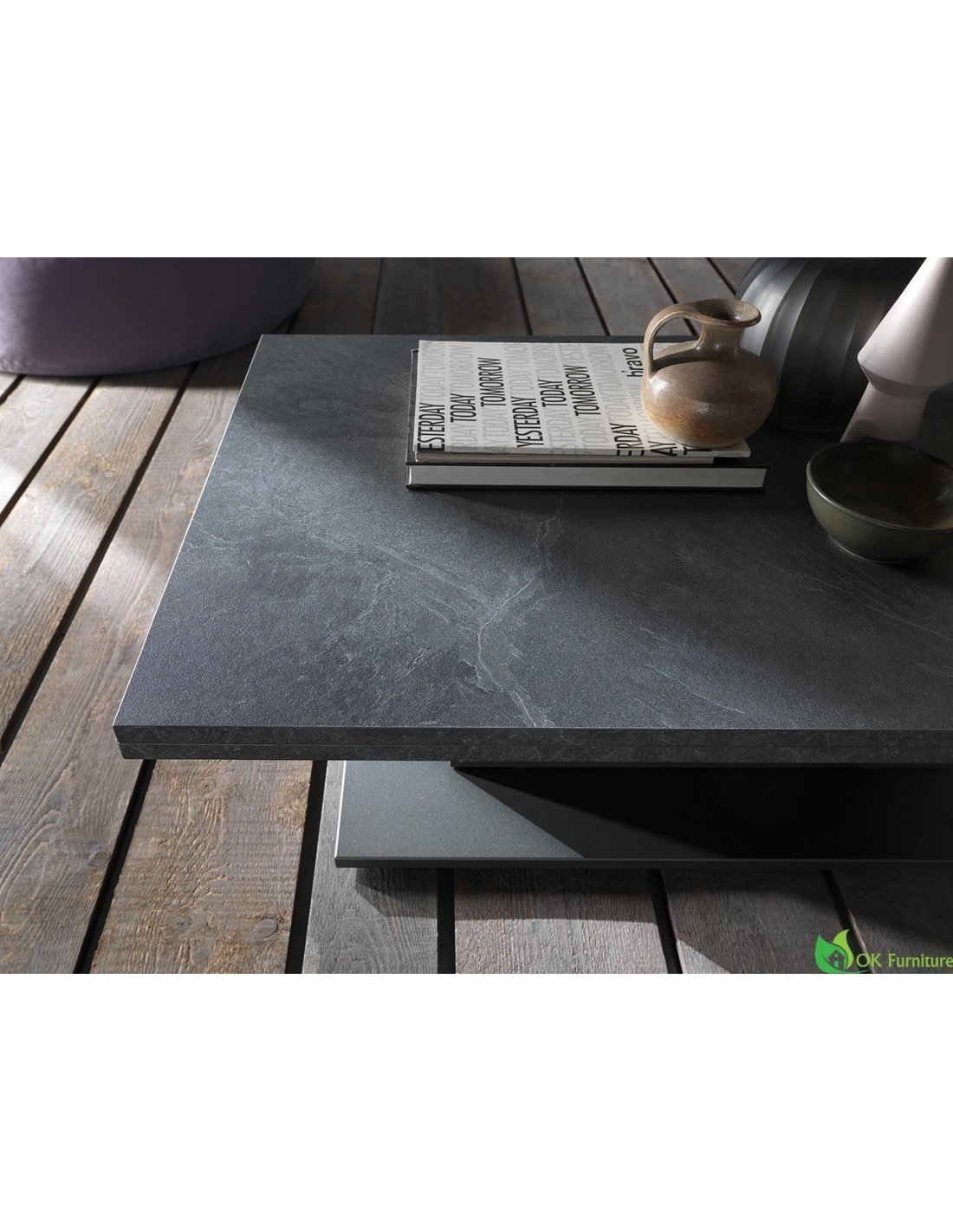 Coffee table converts into a dining table, adjustable height and doubled in the book. Discover the total range of FINISHES and the TECHNICAL DATA SHEET of the product.