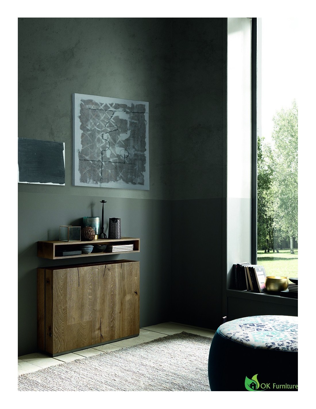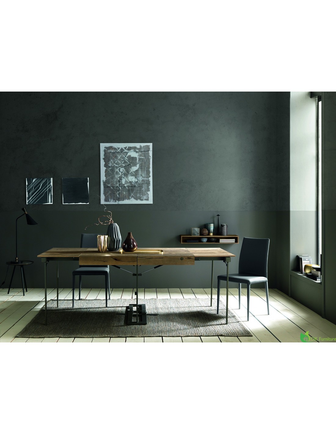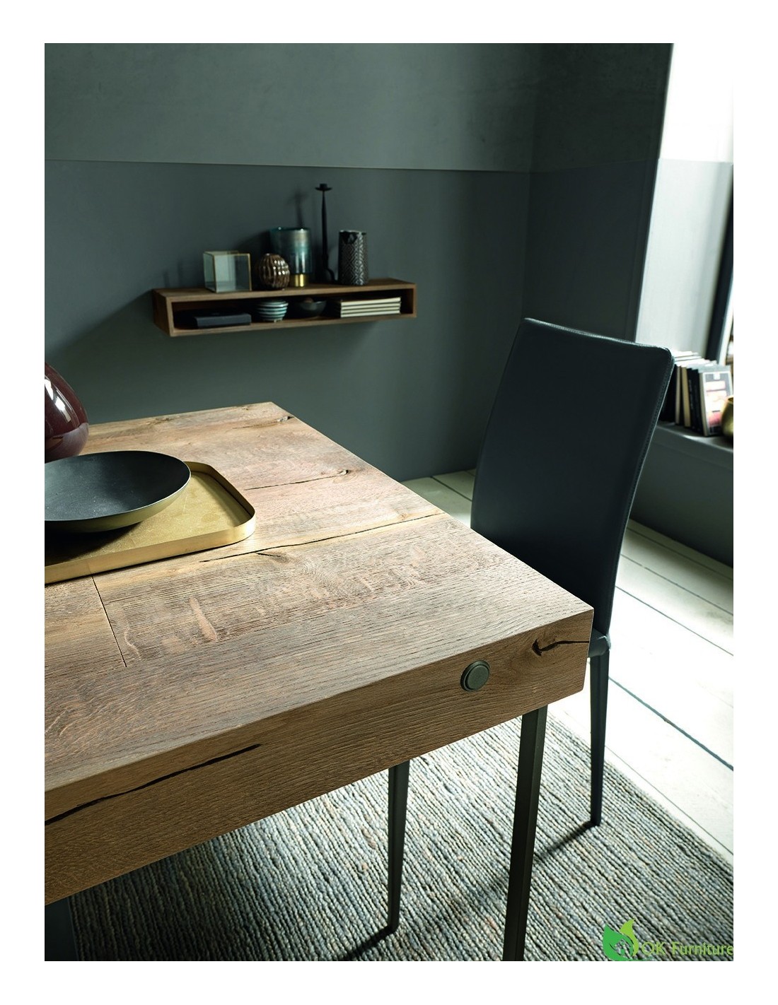 Geniale, come il nome a cui si ispira, da vinci è un complemento d’arredo originale ed esclusivo, ma se a prima vistala sua forma compatta evoca una valigia, il viaggio che é in grado di intraprendere é sorprendente. Un piccolo spostamento dalla parete in centro stanza e pochi movimenti trasformano una consolle in un praticissimo tavoloda pranzo: la struttura leggera, ma estremamente stabile, sorregge il piano realizzato in rovere massiccio dall’aspetto estetico vintage che suggerisce l’esperienza in “materia”.