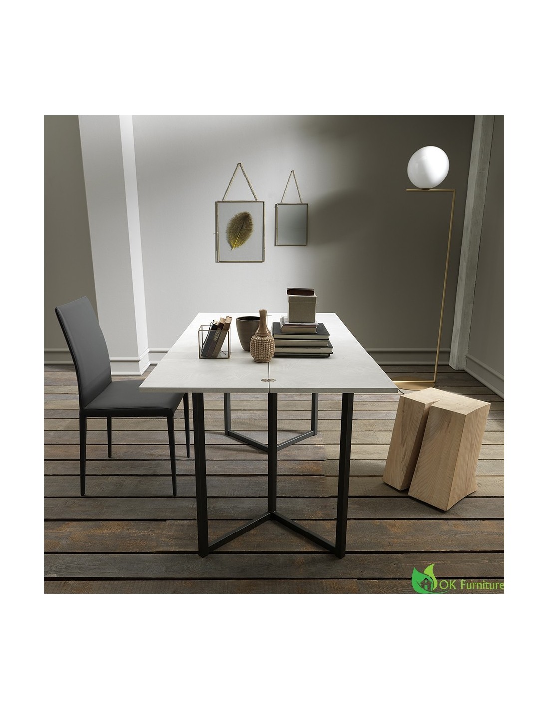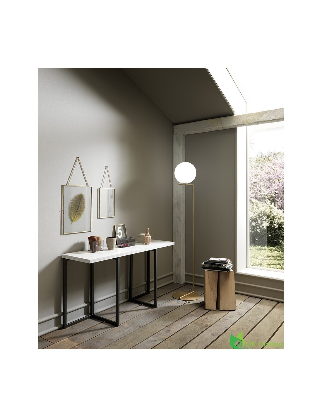 Consolle estensibile, struttura in metallo, piano raddoppiabile a libro in nobilitato o effetto malta.