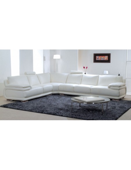 Divano componibile ad angolo e bracciolo a "C", rivestimento disponibile in diverse finiture pelle o ecopelle.