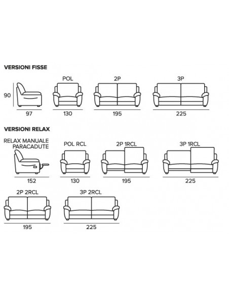 Divano moderno dalle forme morbide e arrotondate, disponibile anche con sistema Relax.