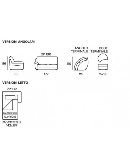 Divano dal design moderno con angolo terminale arrotondato e pouff a mezzaluna, che può anche essere utilizzato per comporre una comoda penisola. Disponibile in diversi rivestimenti in pelle o ecopelle con diverse colorazioni. I colori disponibili si possono visionare nelle schede PDF allegate.