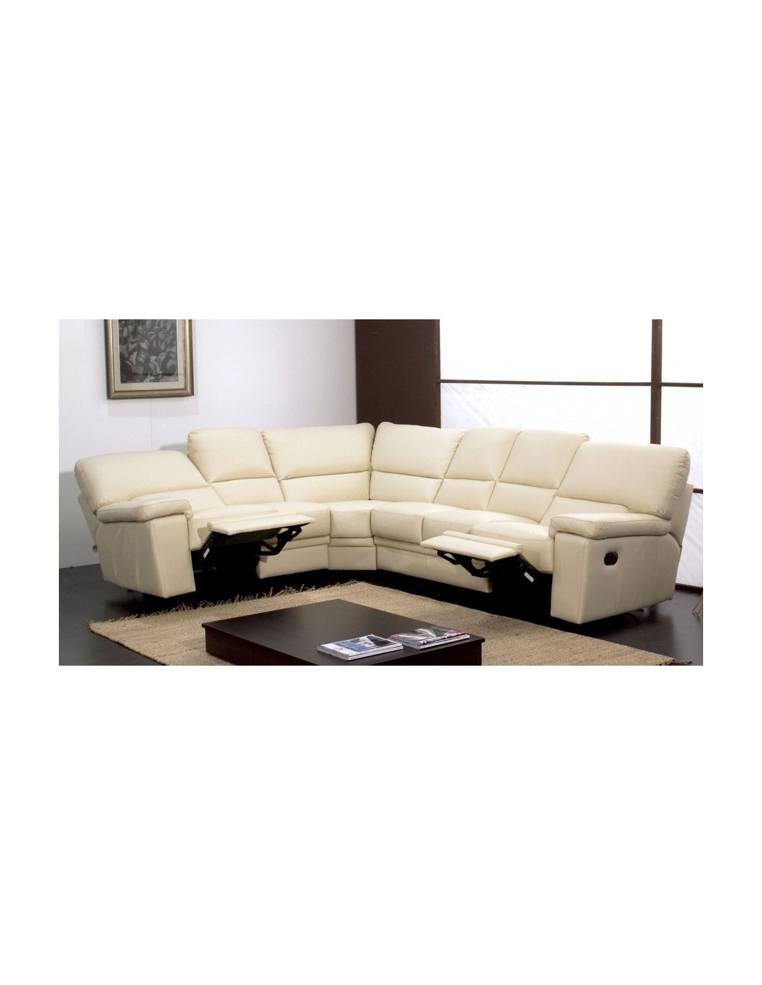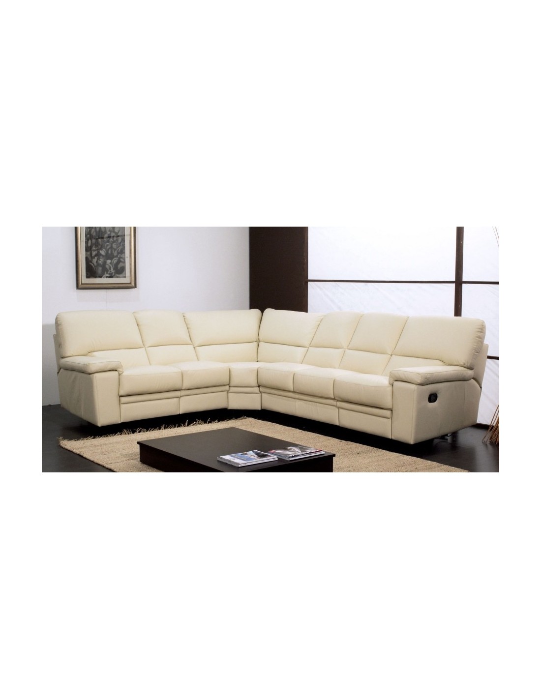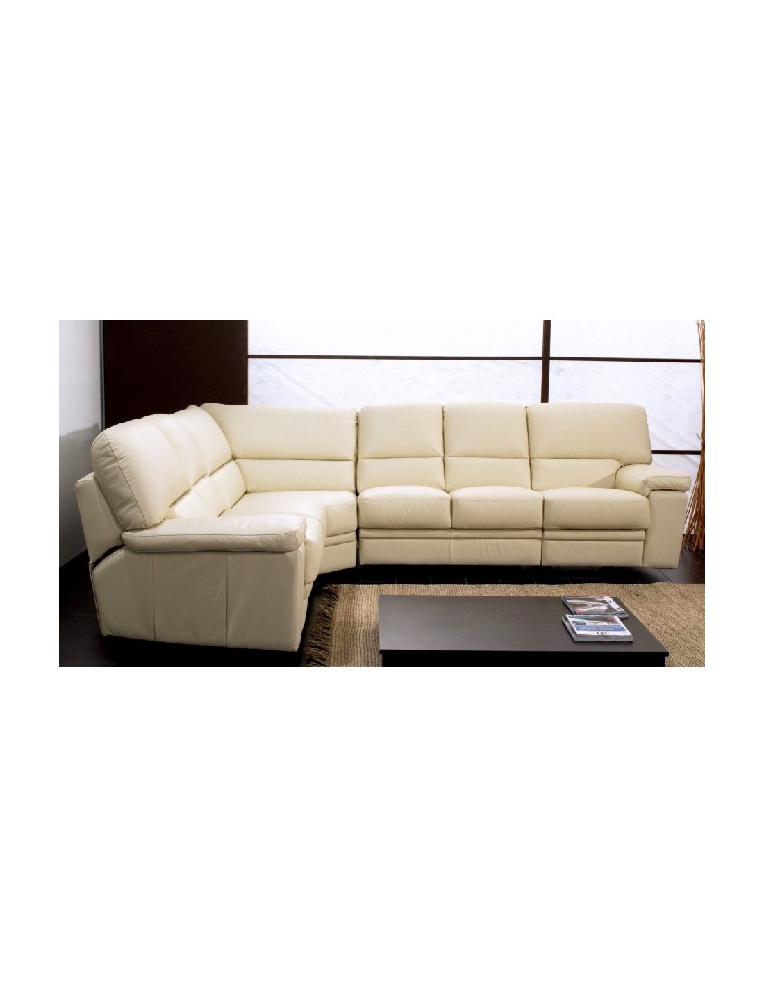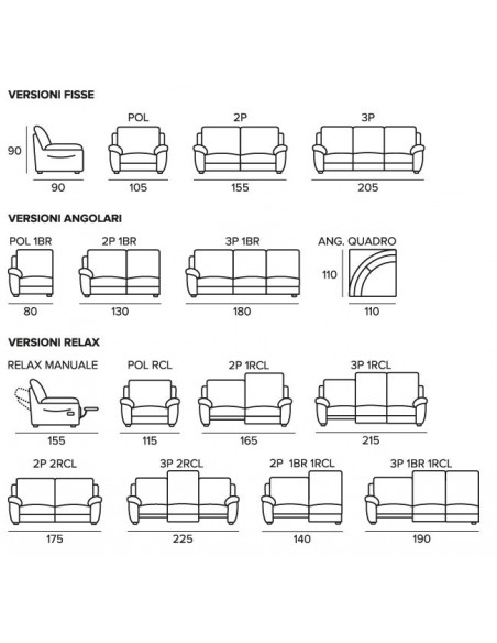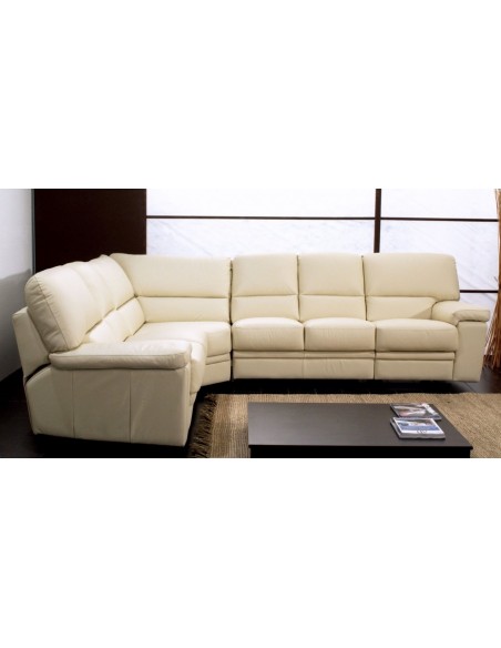 Salotto componibile disponibile in diverse finiture in pelle o ecopelle, su richiesta anche con sistema relax.