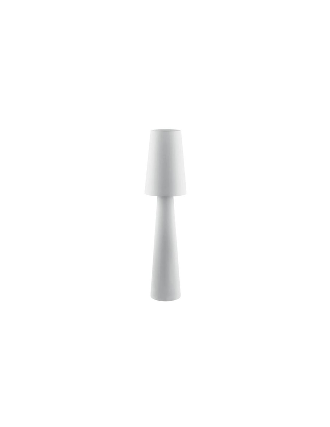 Lampada con struttura in metallo verniciato bianco, con paralume in lamina di pvc rivestita con tessuto bianco. Interruttore a pedale.
