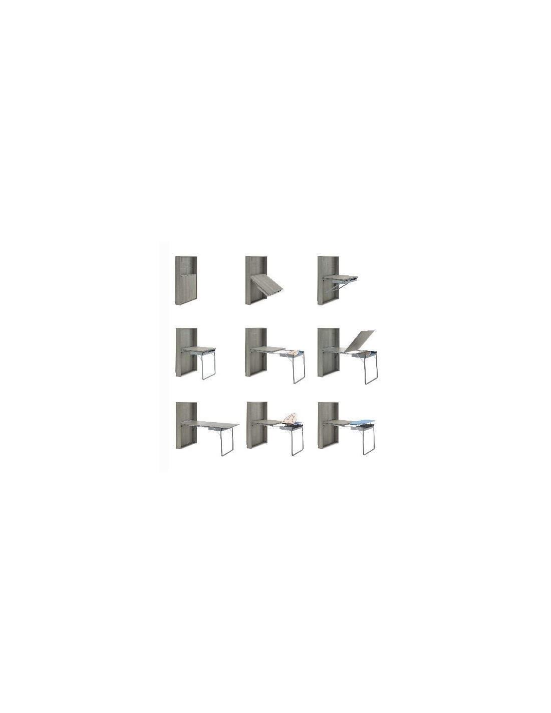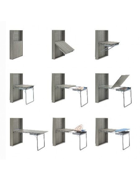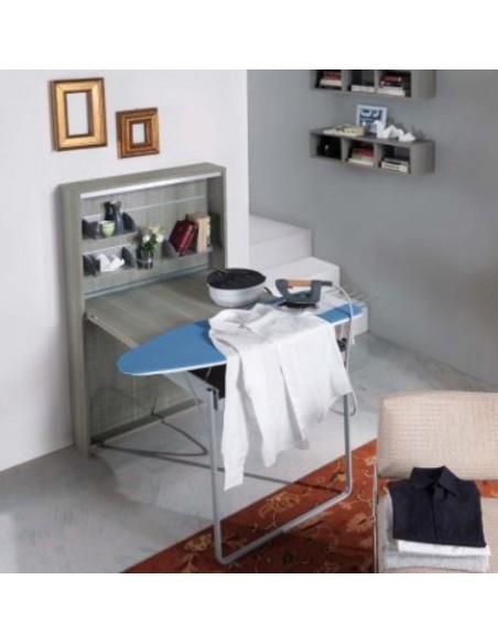 Consolle salvaspazio trasformabile in piccolo tavolo da pranzo o scrivania e annesso kit stiro.
